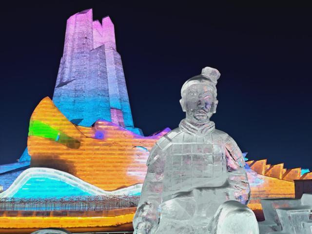 秦始皇陵出土的青铜编钟,曾奏响过古老王朝的恢宏乐章。如今时光流转,跨越千里,来到冰城哈尔滨,在哈尔滨冰雪大世界变成冰编钟。冰编钟带着历史的余韵与冰雪的浪漫,静静伫立,等待向世人述说一场跨越古今、融合南北的奇妙故事。跪射俑跪射俑身穿交领右衽齐膝长衣,外披铠甲,胫着护腿,足穿方口齐头翘尖履,头绾圆形发髻。跪射的姿态古称之为坐姿,坐姿射击时重心稳,用力省,便于瞄准,同时目标小,是防守或设伏时比较理想