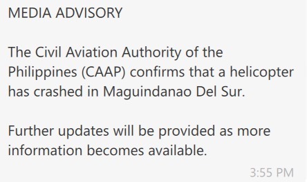 r当天稍早前,菲律宾民航局曾发表声明,证实当天在菲南部坠毁的飞行器为一架直升机。